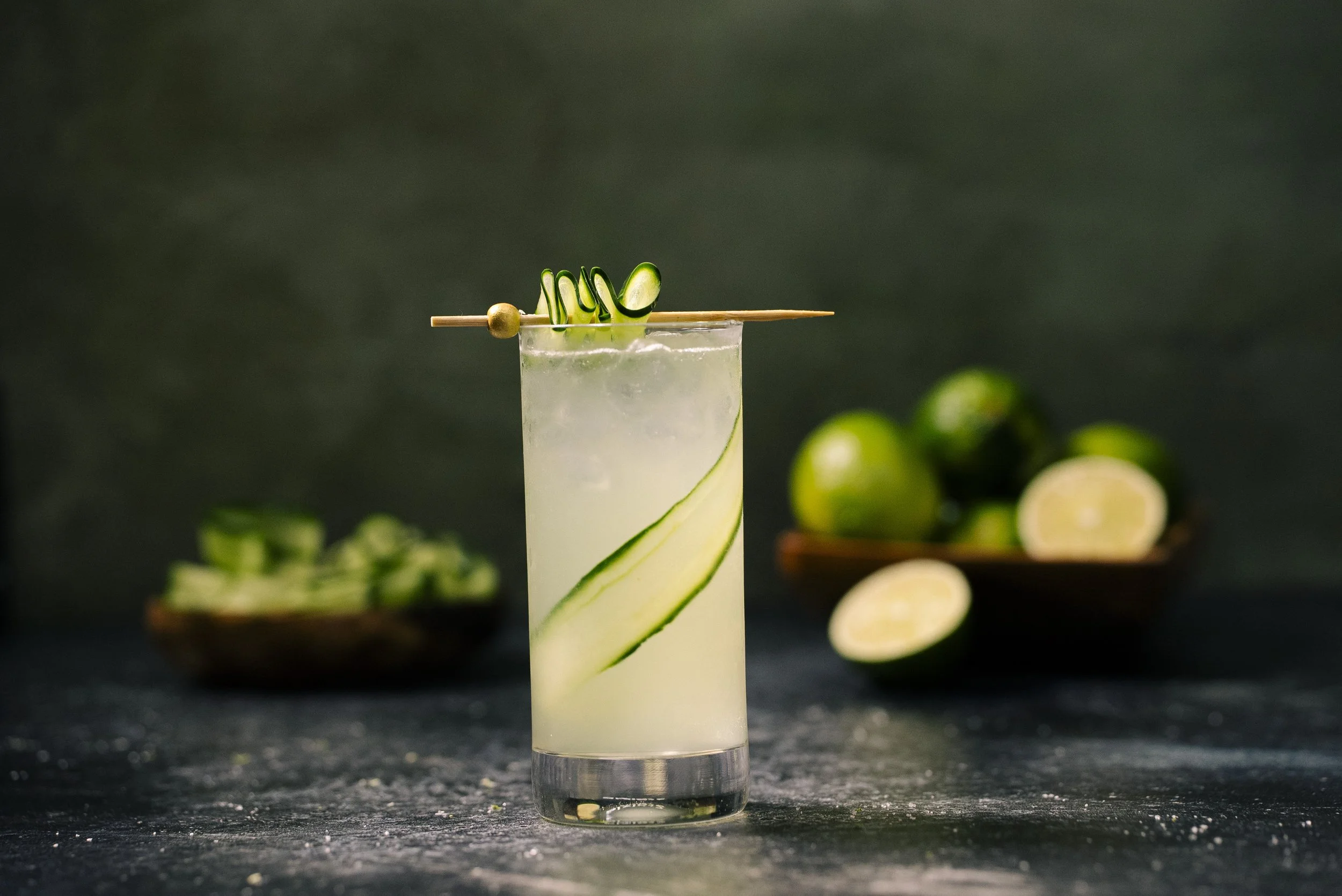 This crisp cocktail mingles gin, elderflower liqueur, refreshing cucumber and fresh lemon, giving your taste buds a dapper, well-dressed experience!